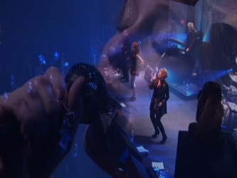 - They are both equally interesting to me. The concert is a bit more challenging because you can't go back and re-shoot it the way you can with the short-form video. With the concert there's a lot of unpredictability and random surprises that occur because you're shooting reality. If you're a cameratech you have to be totally focussed. It takes all your concentration to shoot a concert well from any camera position. It's important to me that there's a close-up camera on the vocalist at all times, and when they change position they must do it smoothly and only during the transition of sections of a song - I don't want them to change position in the middle of a verse, for example. So I teach my camera techs about song structure and they must learn to shoot keeping that in mind. I also direct my cameras to shoot mise-en-scene, which to me means that each camera is capturing its own story with its unique point-of-view. It's equally important to me not to have too many cameras, or the stories become jumbled and lose their unique quality. There is a number for each venue that is just right for me which gives each camera its uniqueness and identity within the whole. Contrasting that, the short-form music video uses only one camera, and you may repeat the same scene shooting from different angles. There's much more control when you're filming an un-reality - a grand illusion. What's interesting to me in the short-form video is to create a story that no one else would anticipate that is synchronized to the mood and structure of the music - to frame the music in a new unexpected way. There is a dynamic drama, a kind of visual curiosity that has to build over time. I think in terms of themes or visual motifs, development and recapitulation. As you can see, I end up using terminology that is usually applied to music composition when I discuss video composition.